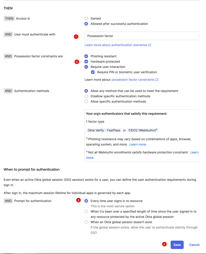 In the next section I would like to briefly explain, how I’ve configured the Okta authentication policies to achieve the desired True Device SSO result, that is shown in the initial demo in this blog.