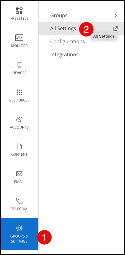 Navigate to GROUPS & SETTINGS –> All Settings
