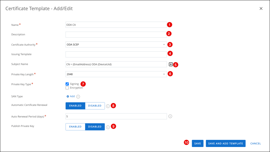 • Certificate Template: Select the same Certificate Template that you configured in the previous step