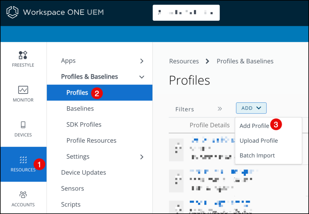 Workspace ONE Profiles configuration