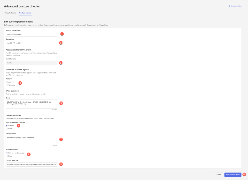 10. Save: Save the posture check configuration.