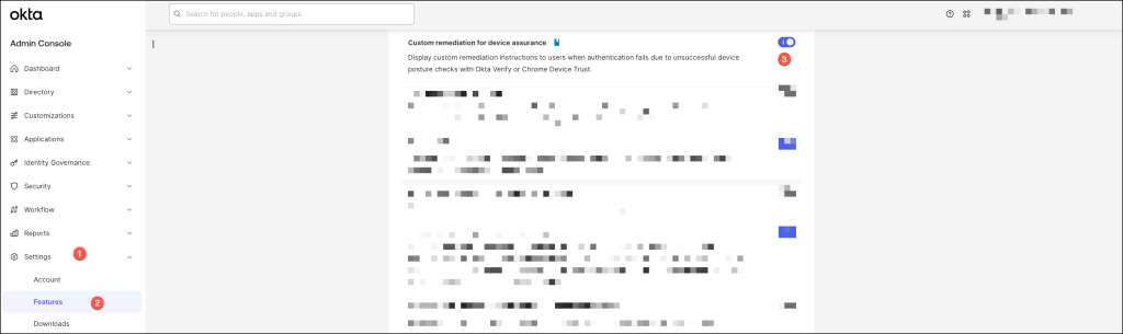 In order to utilize custom remediation messages for users failing to meet device assurance compliance, the following feature must also be enabled.