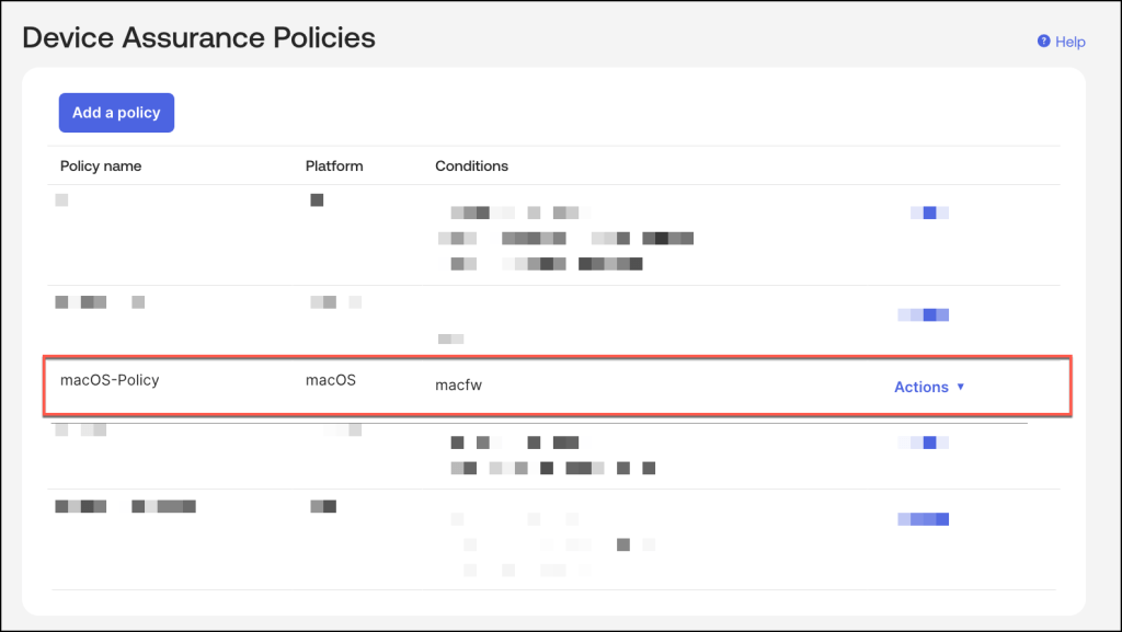 In the Device Assurance Policies click Add a policy.