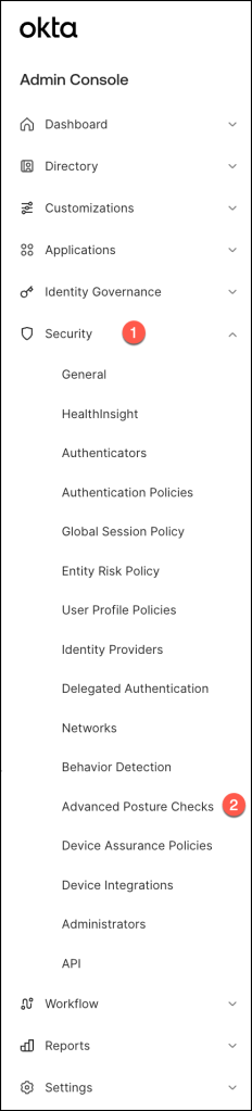 • Okta Device Assurance: A strong understanding of Okta Device Assurance is essential, as Advanced Posture Checks builds upon its capabilities.