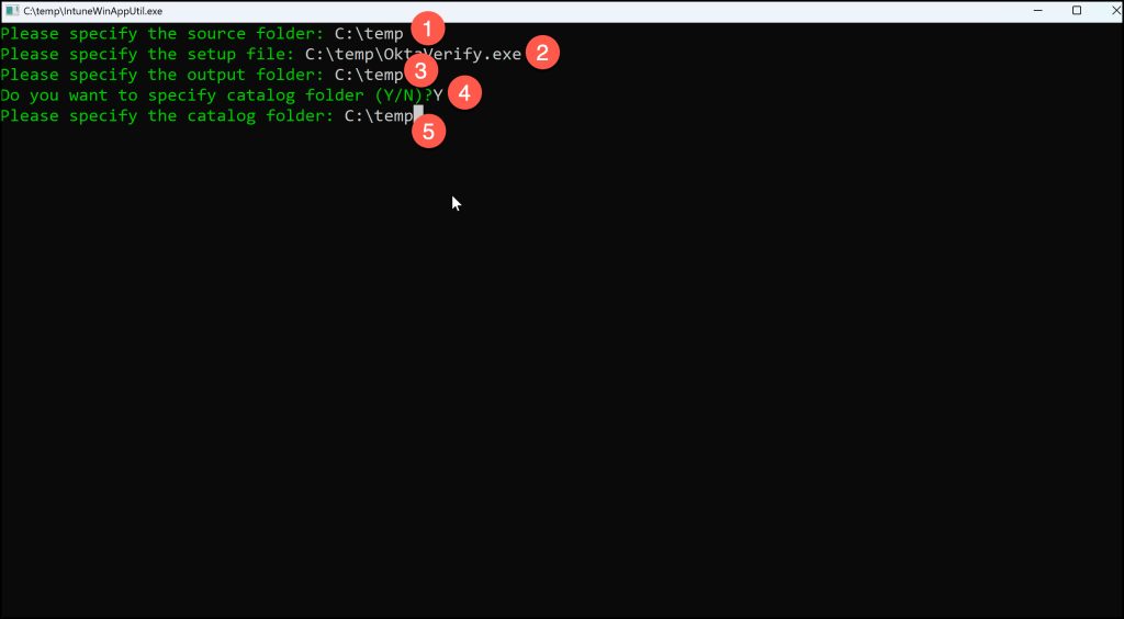 After these inputs, the tool will start converting the EXE installer into an .intunewin package. You should see an output similar to: