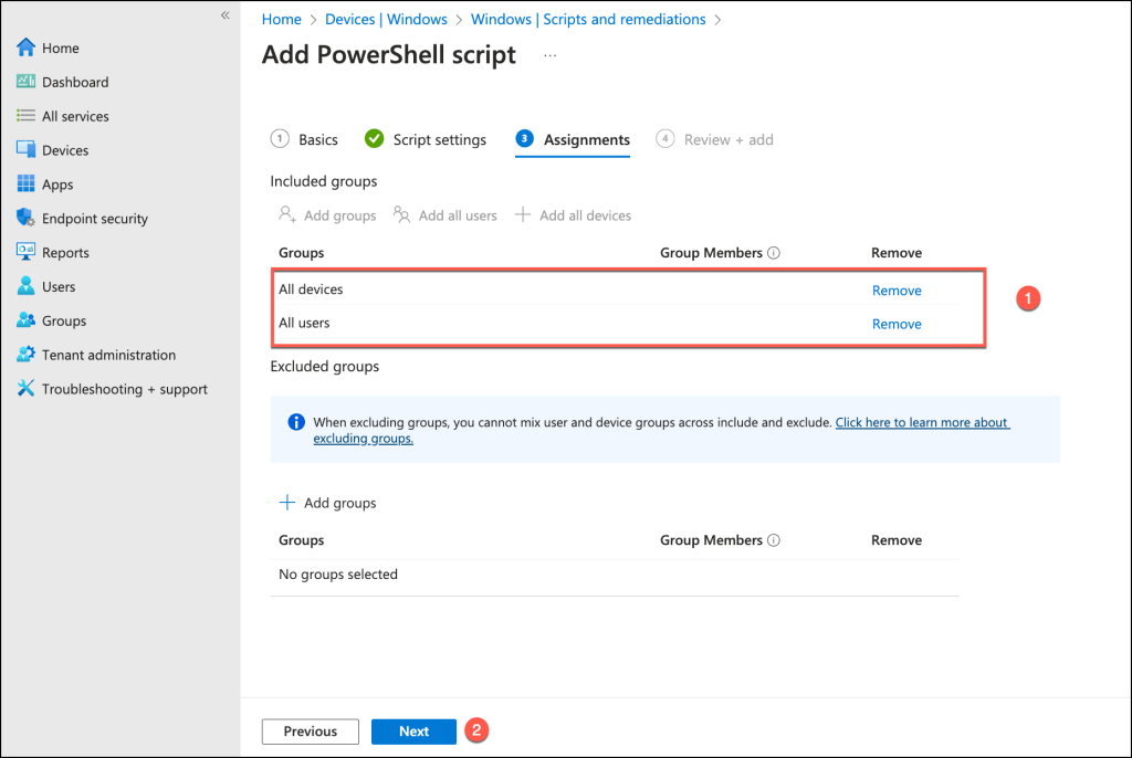 Navigate to Devices > Scripts and remediations to track installation progress.