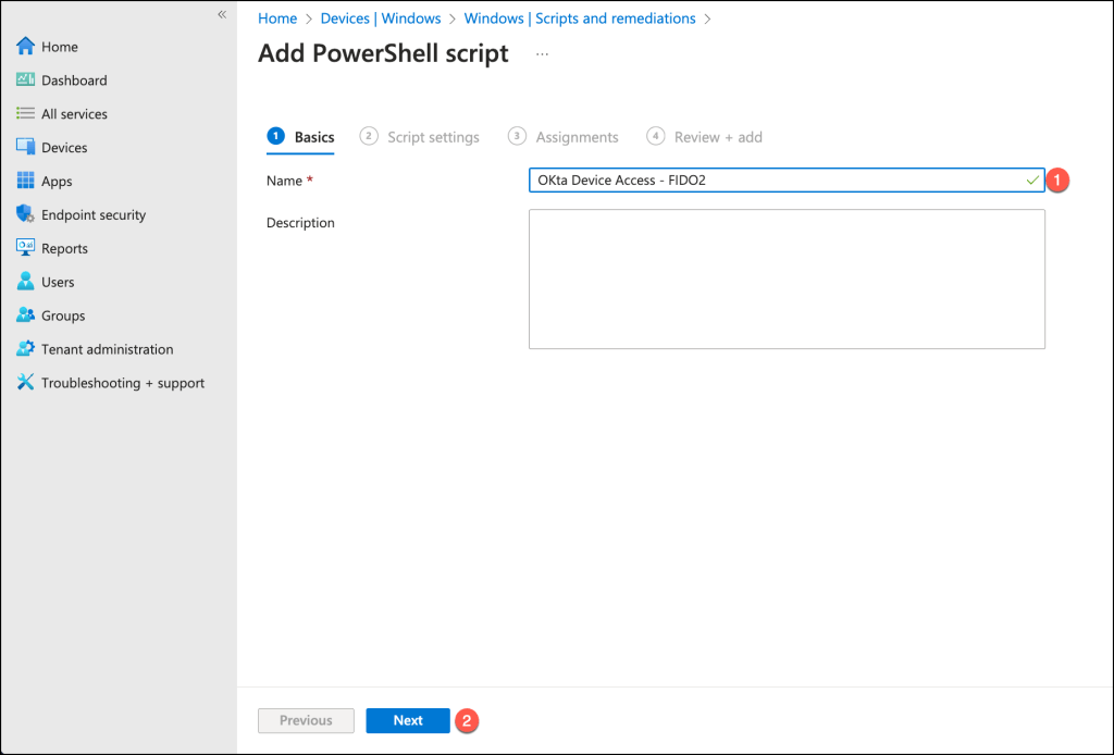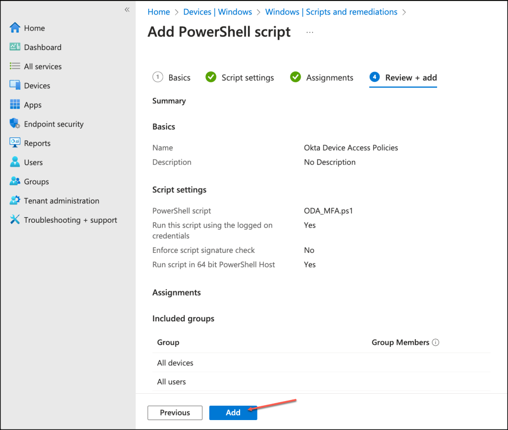 This section outlines the step-by-step process to deploy Okta Device Access registry settings via a PowerShell scriptin Microsoft Intune.