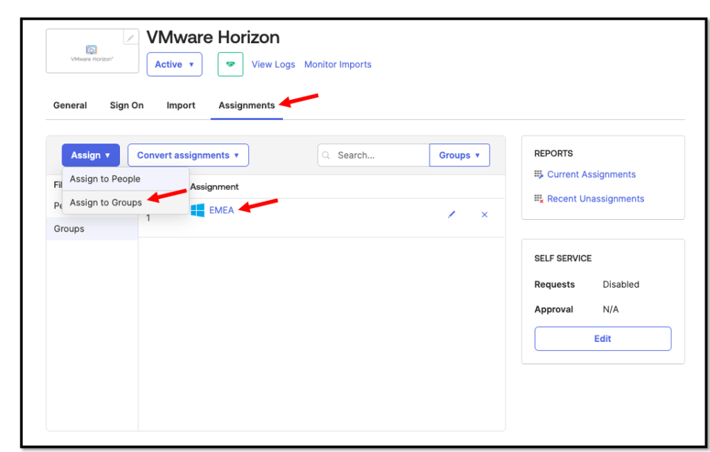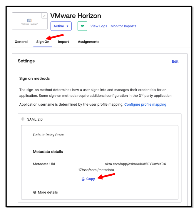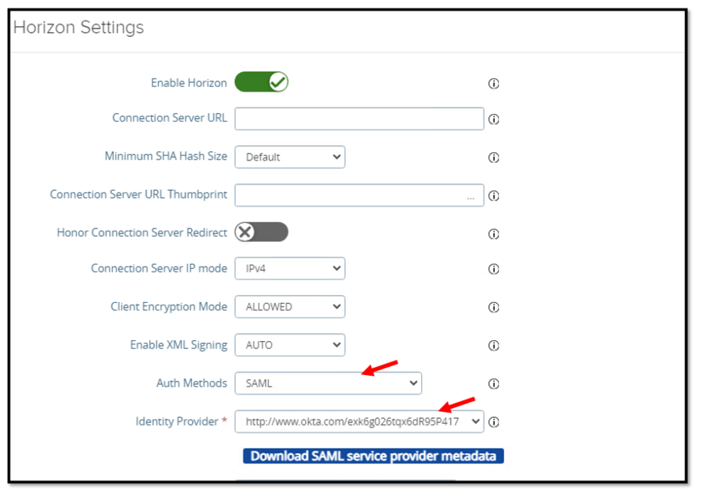 In the next steps we will configure the Horizon Integration with Okta for True SSO.