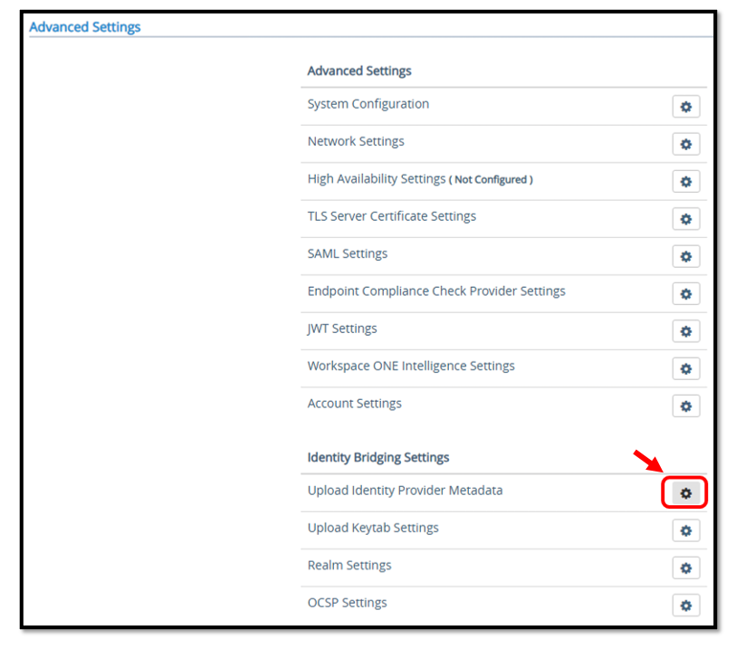 Login to the VMware Unified Access Gateway by entering the correct credentials and navigate to the Identity Bridging Settings. Press the gear button next to