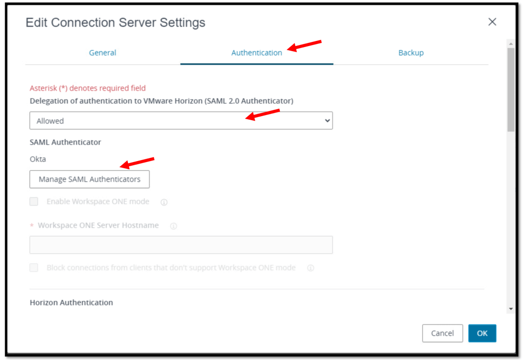 Since environment leverages Horizon TrueSSO, I have to enable the OKTA