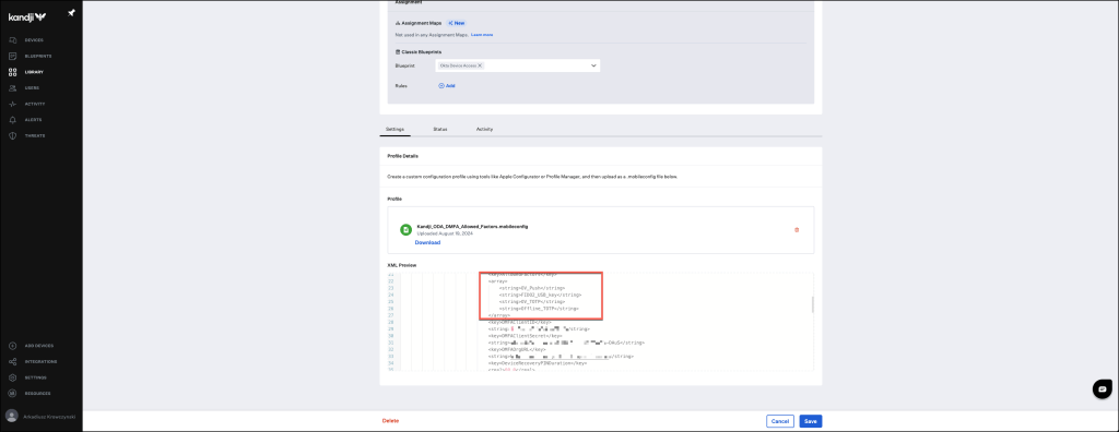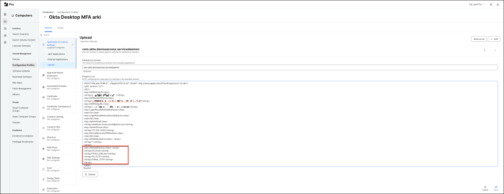 If you’re using Kandji, either create a new Library setting or update an existing one to configure Okta Device Access Desktop MFA. Ensure that the settings align with the required configuration for optimal functionality.