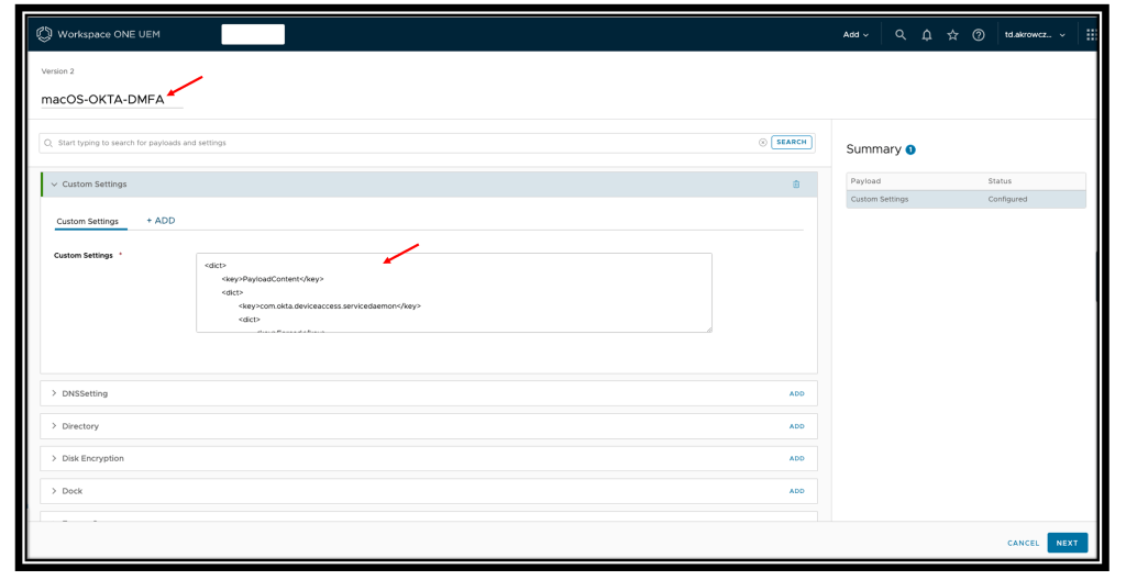 Navigate to the Custom Settings Payload within the Profile and add the following