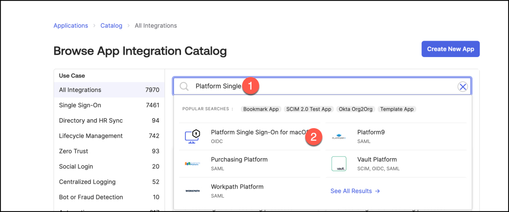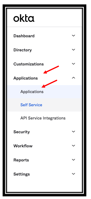 In the Okta Admin Console, go to Applications > Applications > Catalog.