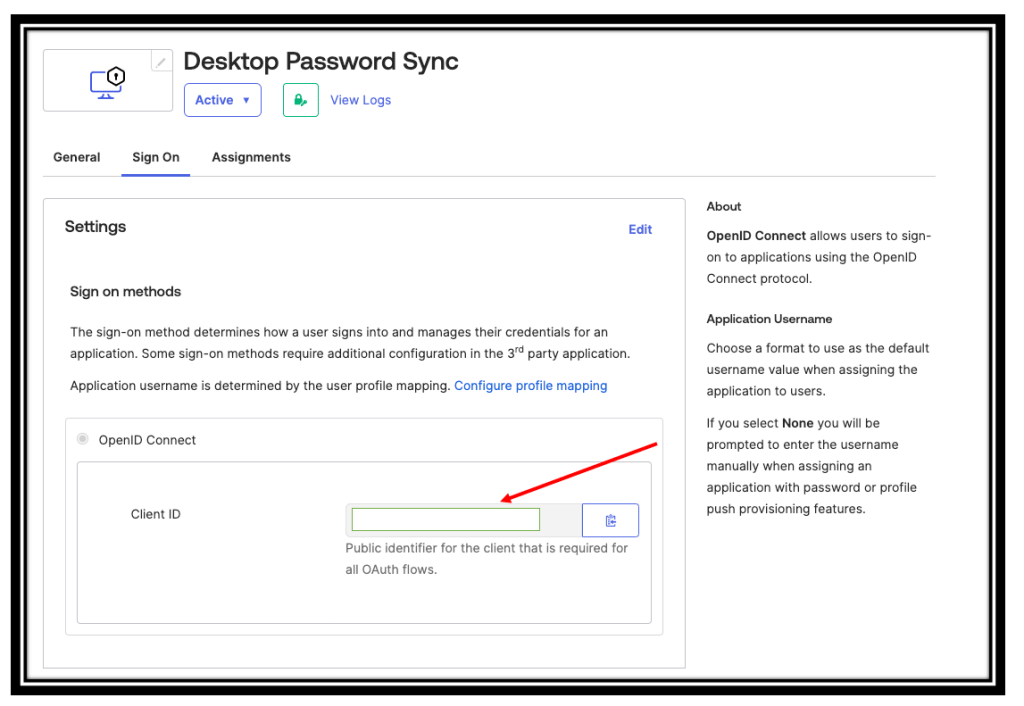 Also replace add-your-client-secret-here with the client secret found in the Desktop MFA app > Sign on tab in your Okta Tenant.