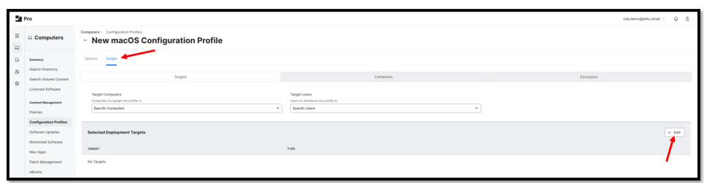 Click Scope in the upper bar and Click + Add next to Selected Deployment Targets