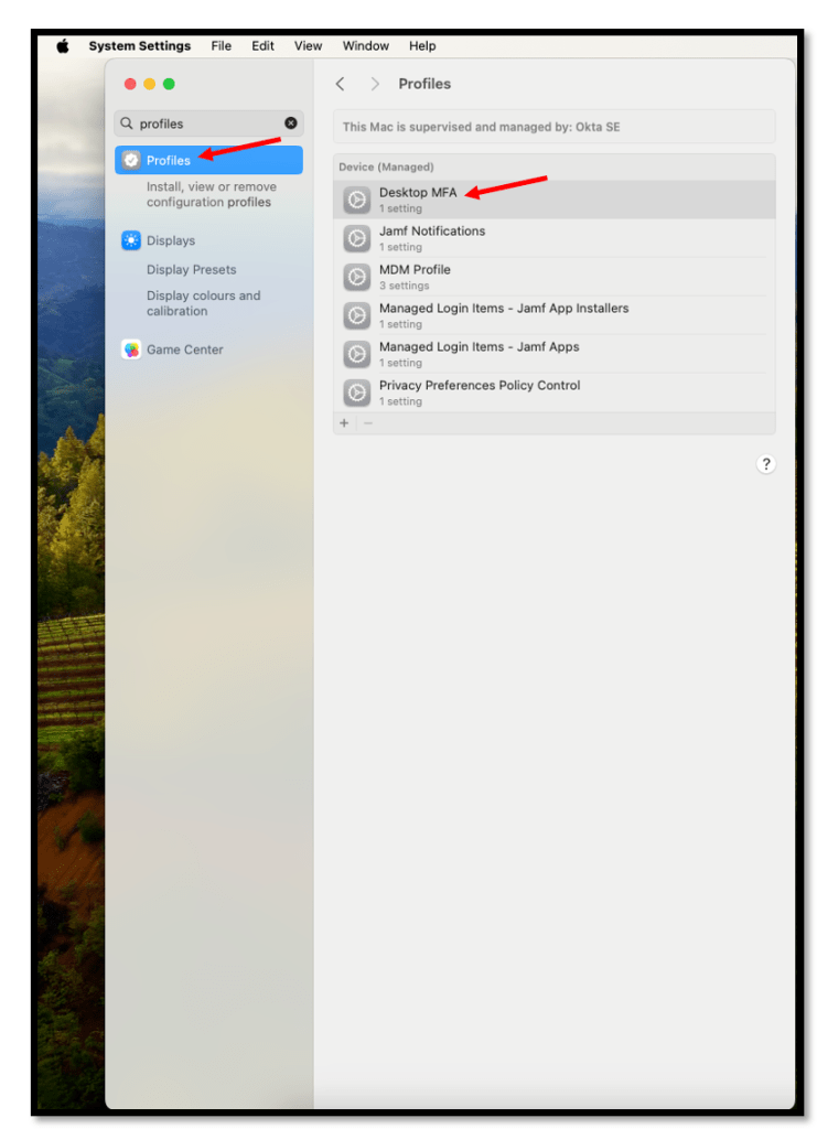 You can also check the profile on the device, just go to System Settings and Profiles, here you should see the Desktop MFA profile.