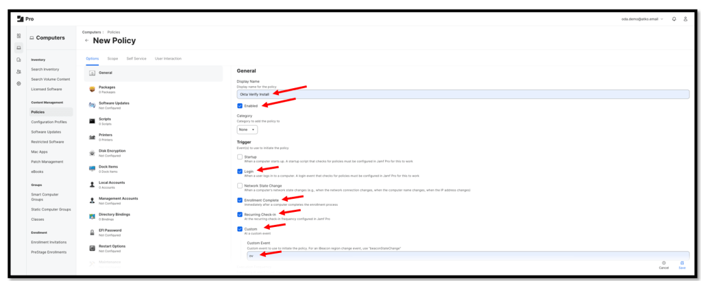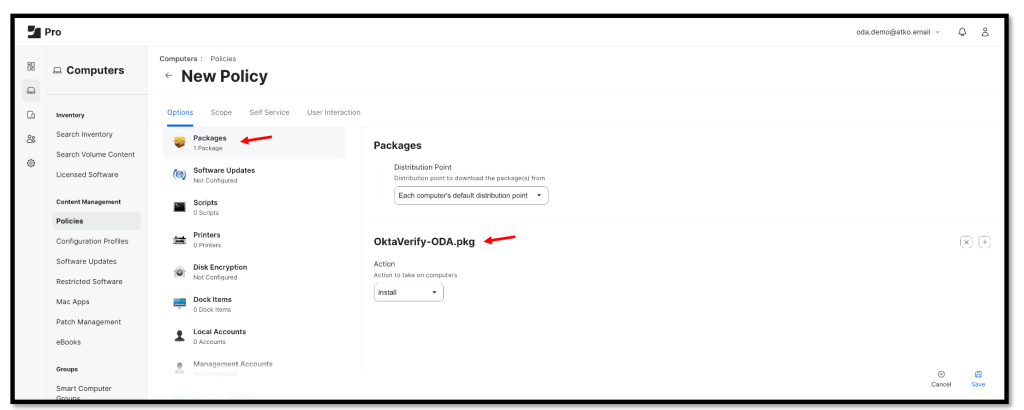 Within the JAMF Admin Console you will now set up a policy to deploy the Okta Verify app to your device.