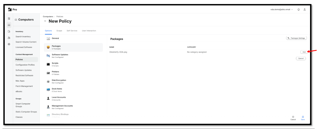 and Click Add next to OktaVerify_ODA.pkg (in my example)
