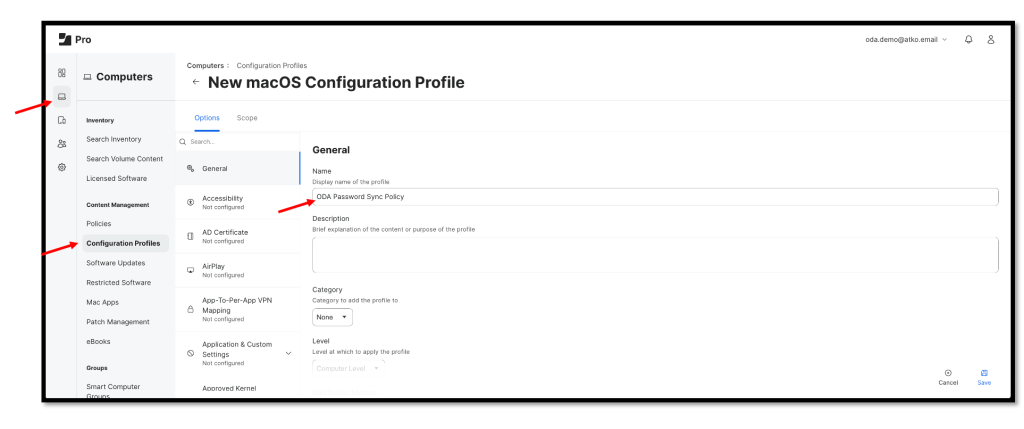 You can also validate this profile on the device, just go to System Settings and Profiles, here you should see the ODA Password Sync Policy