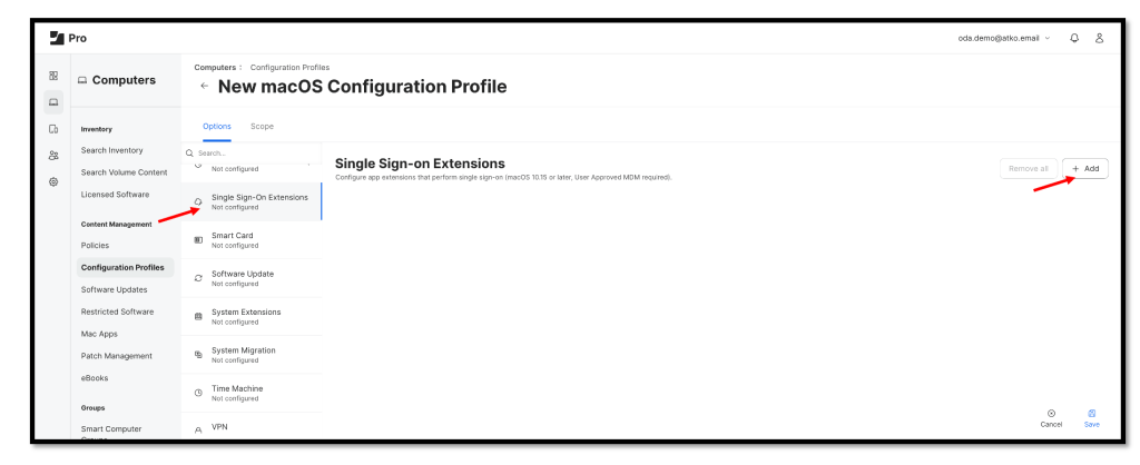 Scroll down, and click on the Single Sign-On Extensions and click + Add to add a new extension.
