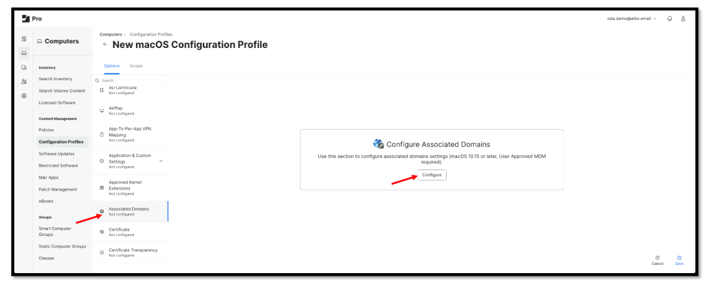 In the sidebar of the window, scroll up and click on Associated Domains click on