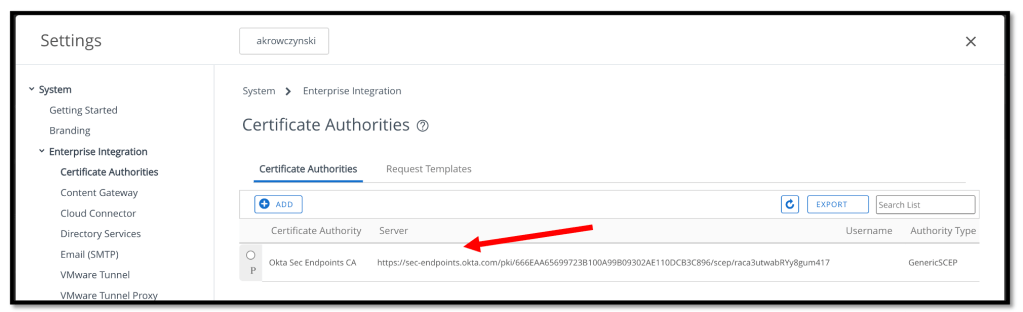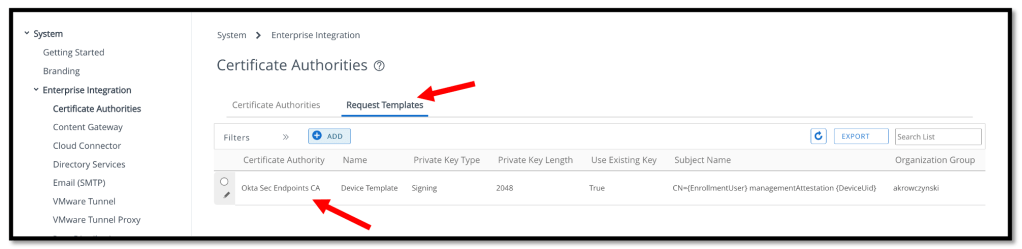 After we’ve successfully created the Certificate Authority and the Request Template, now it’s time to create the device profile to deploy the Okta Intermediate CA to the