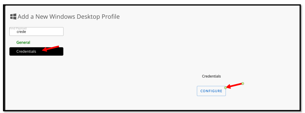 Now we need to select the Credentials in the left pane and click CONFIGURE