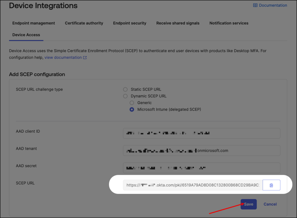 Copy and save the Okta SCEP URL. You will paste the URL in the Microsoft Intune admin center in a later step.