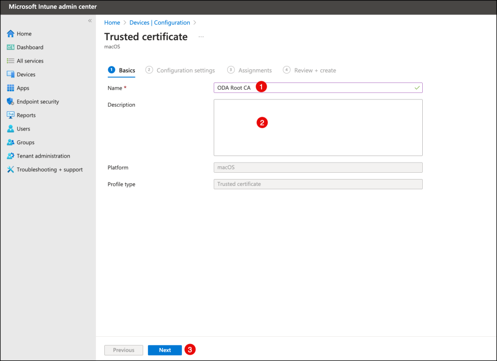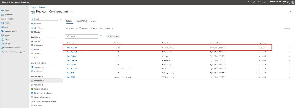 Sign in to the Microsoft Intune admin center, navigate to Devices section and select