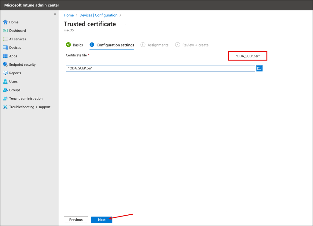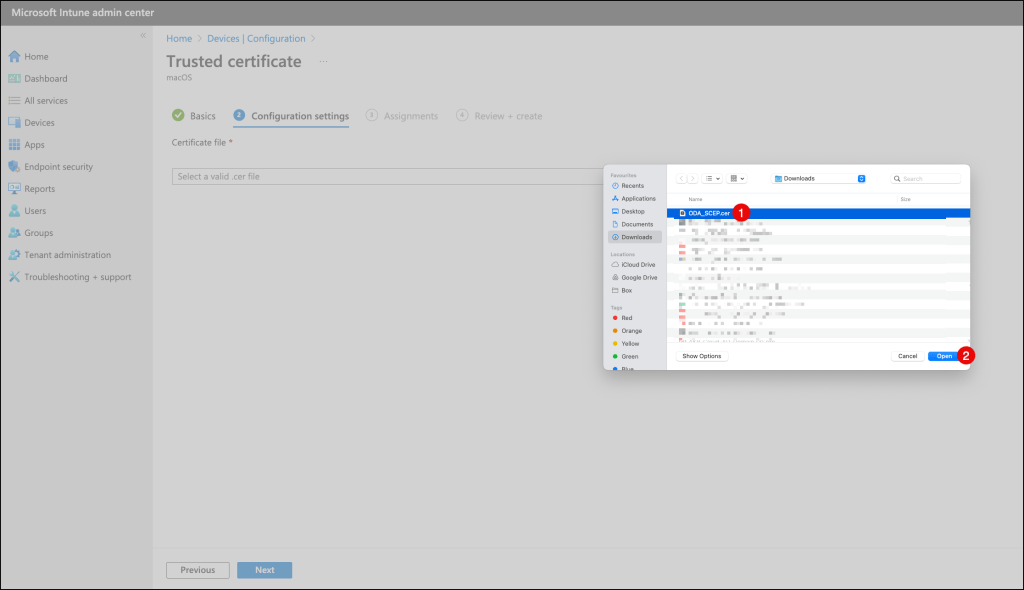 - Select the Configuration profile file: Browse to the .plist file (okta_mobile.plist) file you’ve created upfront.