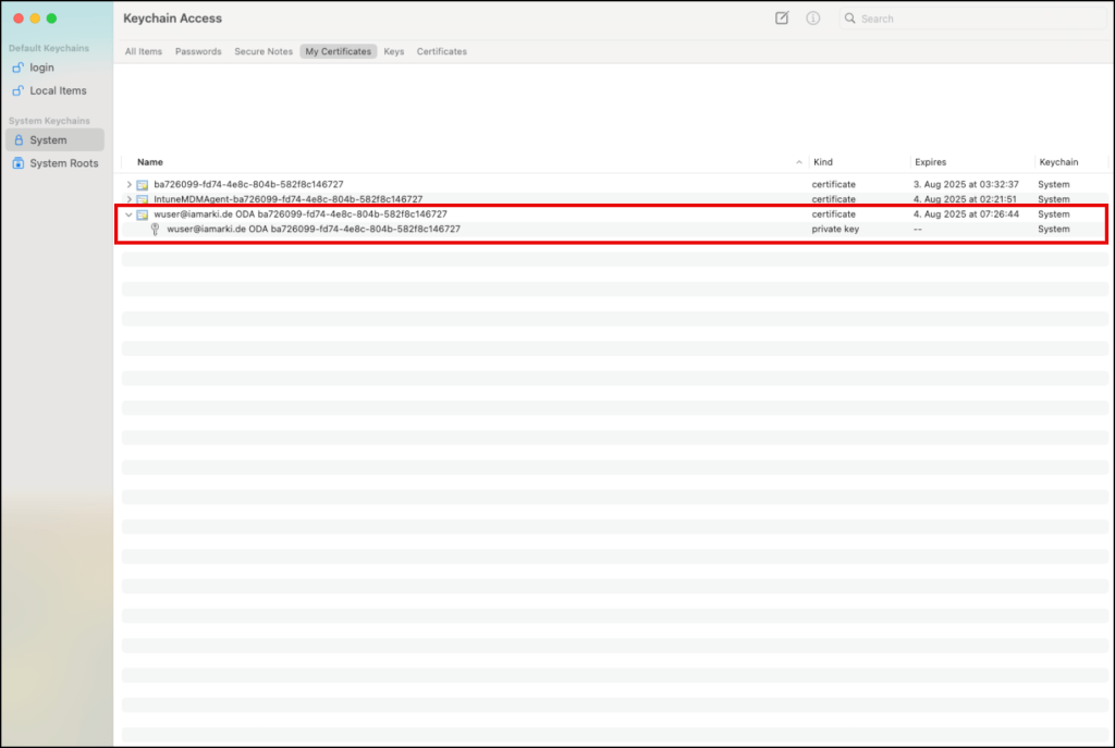 These certificates deploy with your Microsoft Intune environment, and are used to grant access to specific API endpoints and to identify the device making the calls.