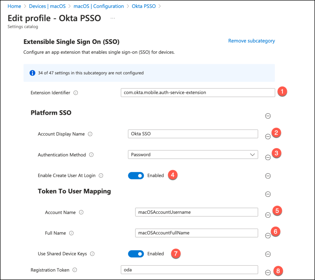 - Platform Single Sign-On (SSO) MDM profiles must be deployed to the device. These profiles allow Okta to integrate with Apple’s identity framework, supporting seamless user authentication and local account provisioning.