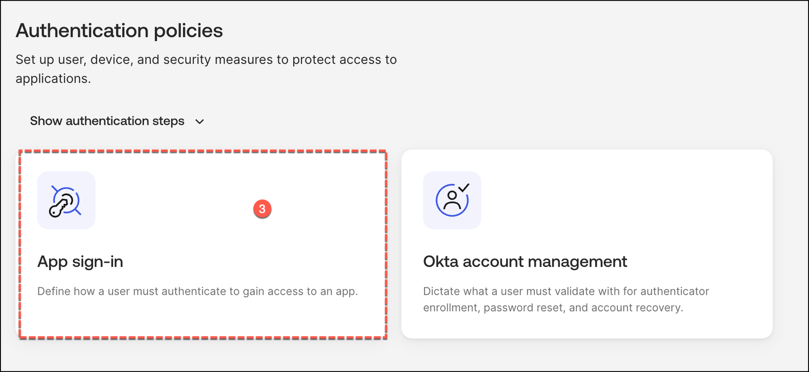 Under the Authentication Policies section, select App sign-in to manage and refine your application-level access controls.