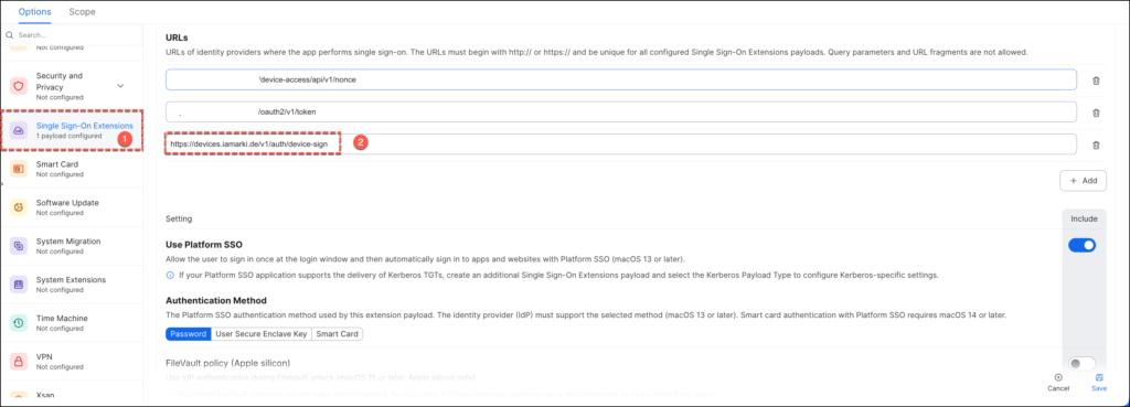 Update your Jamf Pro PSSO profile by adding the URL below to the Single Sign-On Extension payload’s URLsparameter.