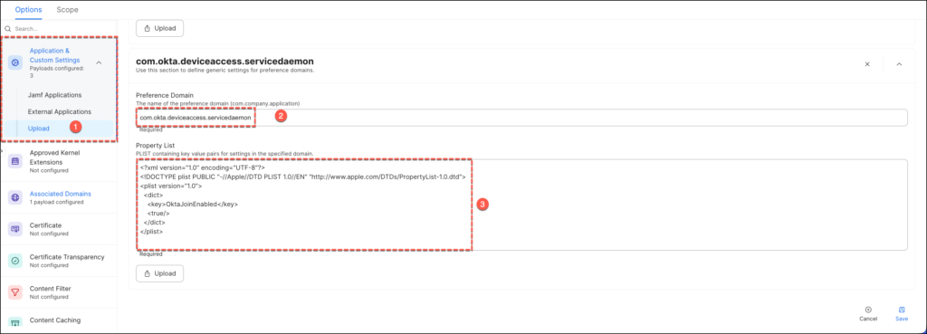 com.okta.deviceaccess.servicedaemon - Property list file: Upload your prepared