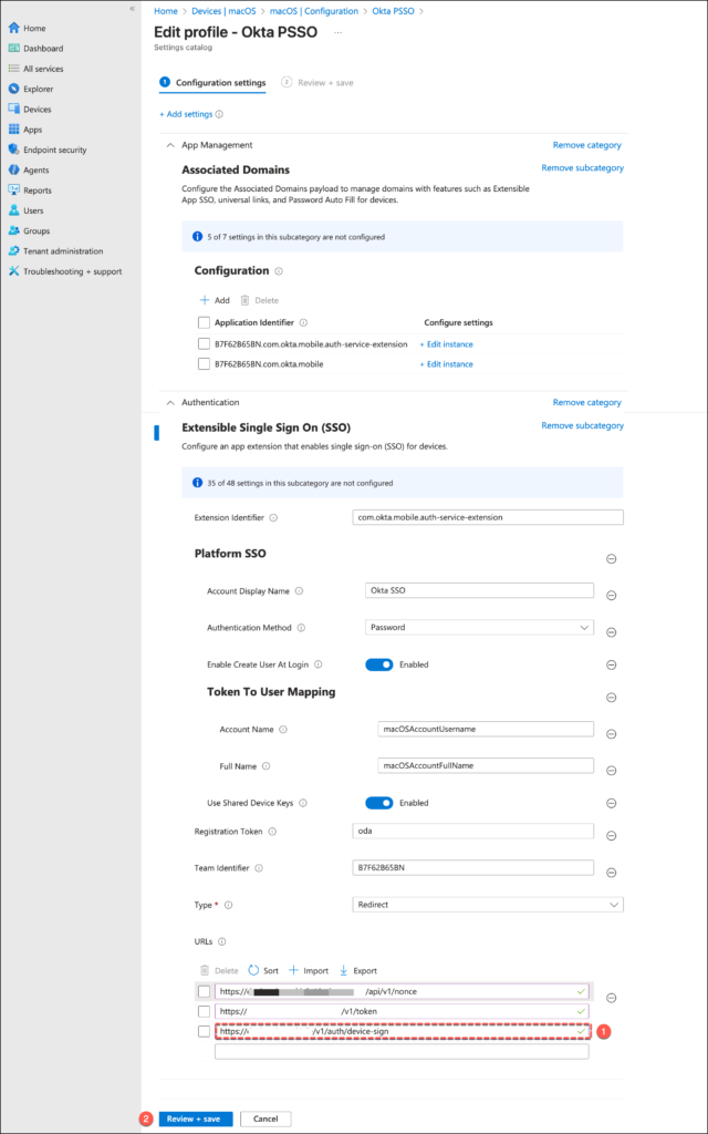 Update your Intune PSSO configuration by inserting the URL below into the URLs field of the Single Sign-On Extension payload.