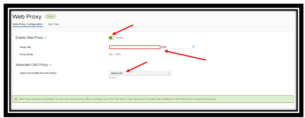 Toggle Enable Web Proxy to Active, select a Cloud Web Security Policy