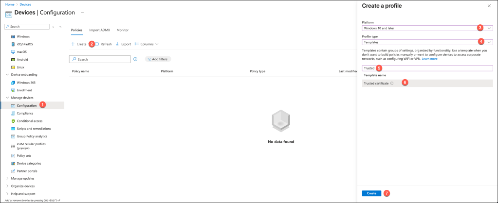 The next steps to create a configuration profile to deploy these settings by navigating to Devices > Manage Devices > Configuration