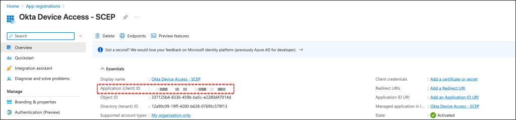 On the app page under Essentials, copy and make a note of the Application (client) ID.