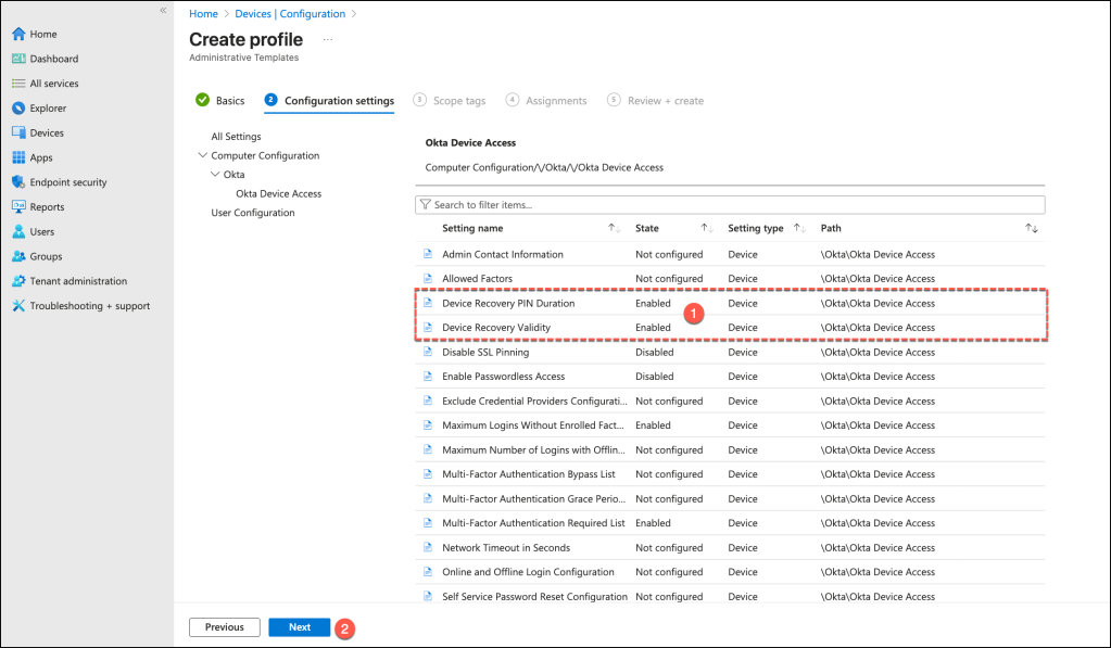 Browse to “Computer Configuration” and “Okta”“Okta Device Access” to configure.