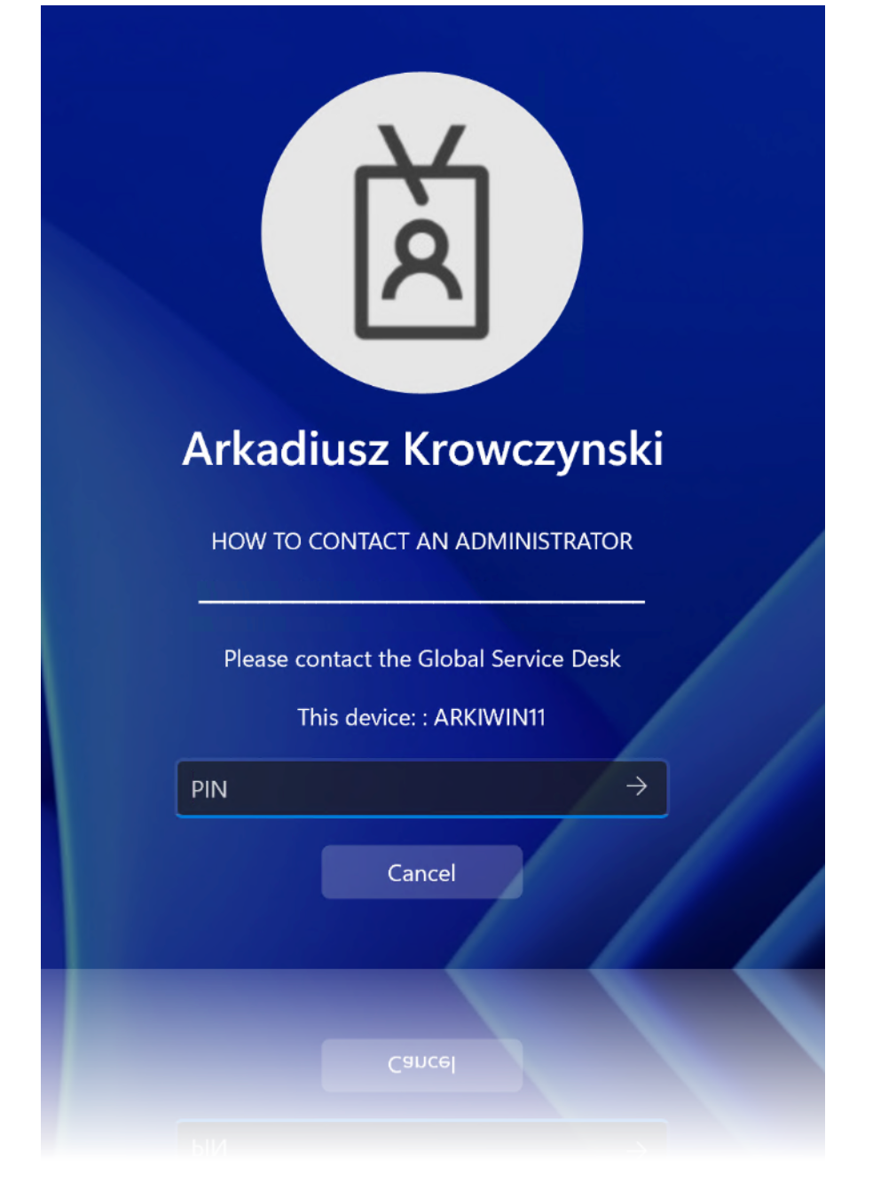 1. Initial User Lockout and “Contact Administrator” Prompt: When a user is unable to sign in due to forgotten credentials, lost MFA device, or policy lockout, the Windows login screen will often direct them to contact their IT administrator.